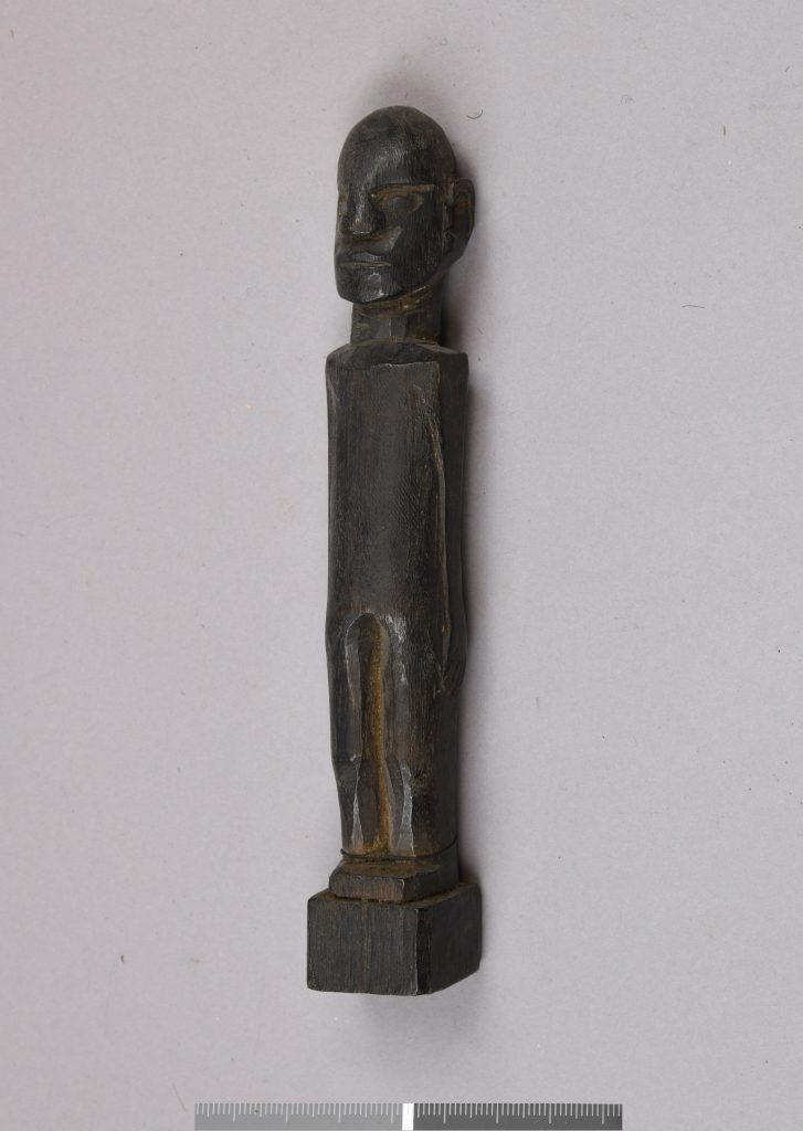 Figur i sort tre. Regnes som magiske og skal bringe fruktbarhet og beskytte mot trolldom. Batakfolket, Indonesia. Innkomst 1934. E8181.